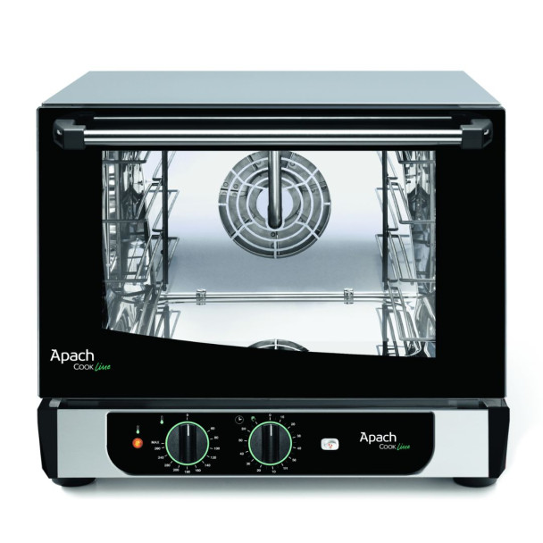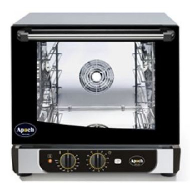 Конвекційна піч з інжекторним парозволоженням, оснащена крильчатковим вентилятором без реверсу та направляючими під гастроємності 450х340 мм.